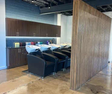 1ONEFirm, Inc. is proud to showcase our work on this stunning 2,500 sq. ft. salon located in Dallas, near Lovers Lane and the Tollway. This remodel features 15 sleek stations and modern amenities designed to provide a high-end experience for clients and stylists alike.